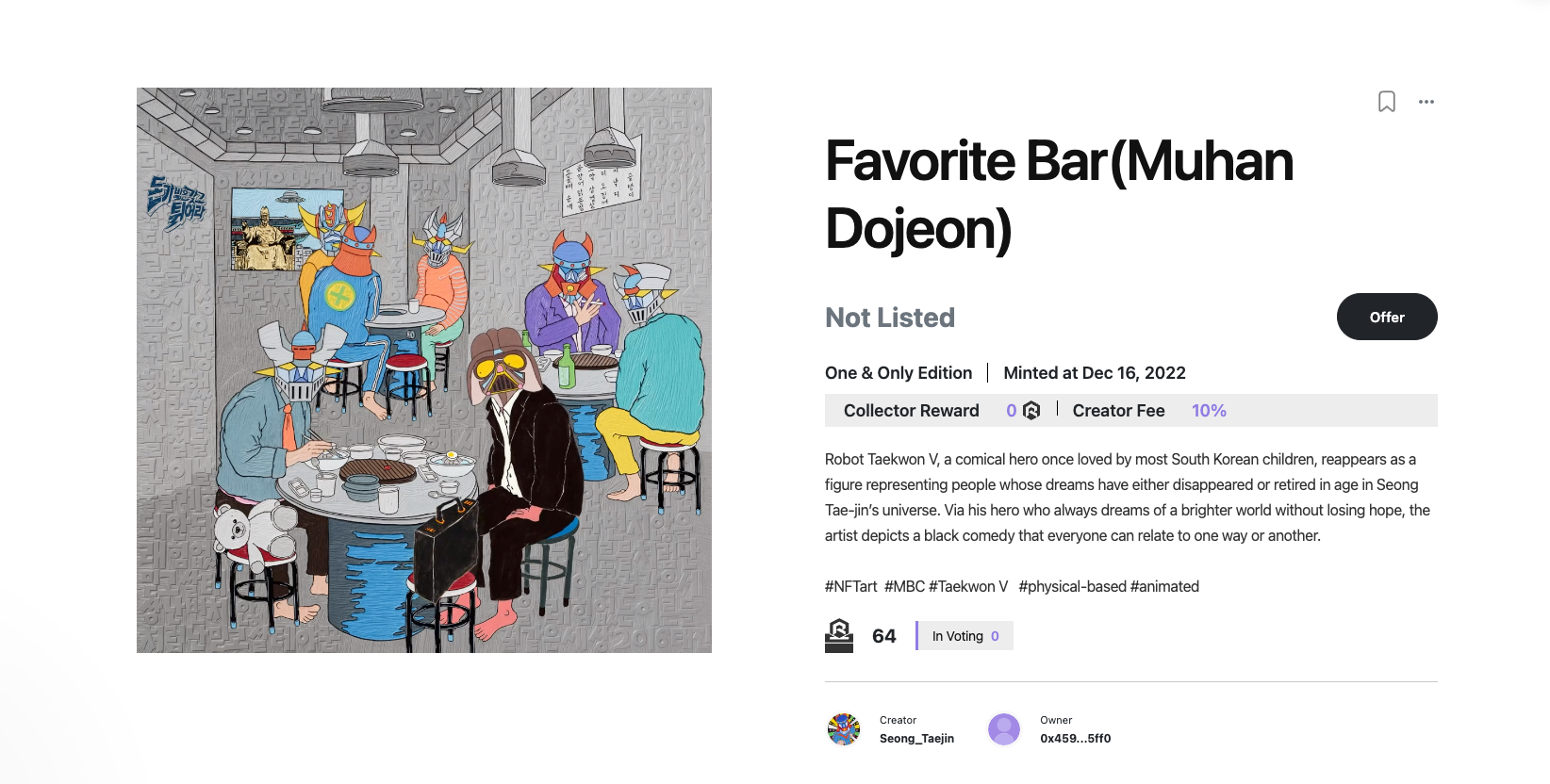 1. NFT 정보 페이지에서 "Offer"를 클릭하여 시작하세요.